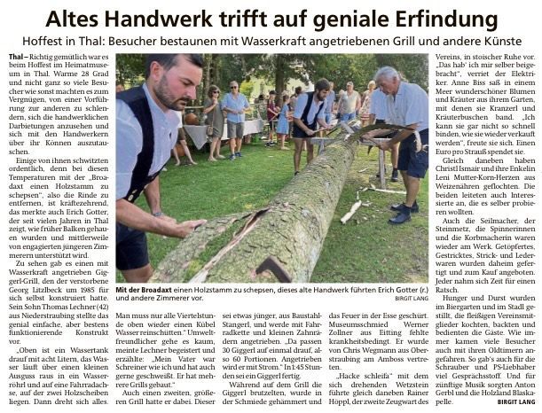 Traditionell gelebtes Handwerk auf dem Hoffest der Oldtimerfreunde Thal
